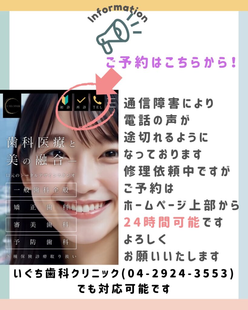 いぐち歯科クリニック(04-2924-3553)でも対応いたします。