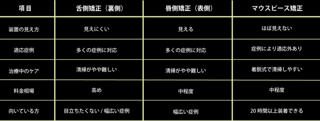 📚 他の矯正方法との比較